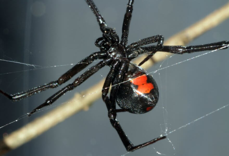 Aranhas conhecidas como viúvas-negras também são bem pequenas (3 cm comprimento) e tem como características o abdômen globoso, preto com detalhe de cor avermelhado ou marrom-acinzentado com desenhos alaranjados na região inferior. Ocorrem tanto nas áreas externas quanto nas áreas internas das casas.